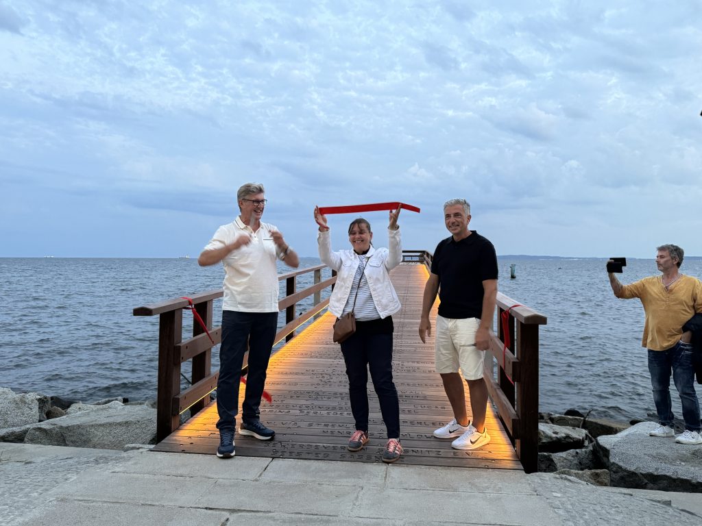 Pünktlich zum Aufgang des Vollmondes konnten wir den Seesteg eröffnen und feierlich zum Begehen freigeben. Ein bewegender Moment für uns alle, zusammen haben wir dieses erste Teilstück geschaffen. In nur 7 Tagen wurden 234 Bohlenpatenschaften von den Sponsoren übernommen. Ein wichtiger Meilenstein war damit gelegt, denn nun konnte mit den vielen Unterstützern für die Bohlen, mit der Stadtverwaltung Sassnitz und den regionalen Firmen die Sanierung im April 2025 vorgenommen werden.